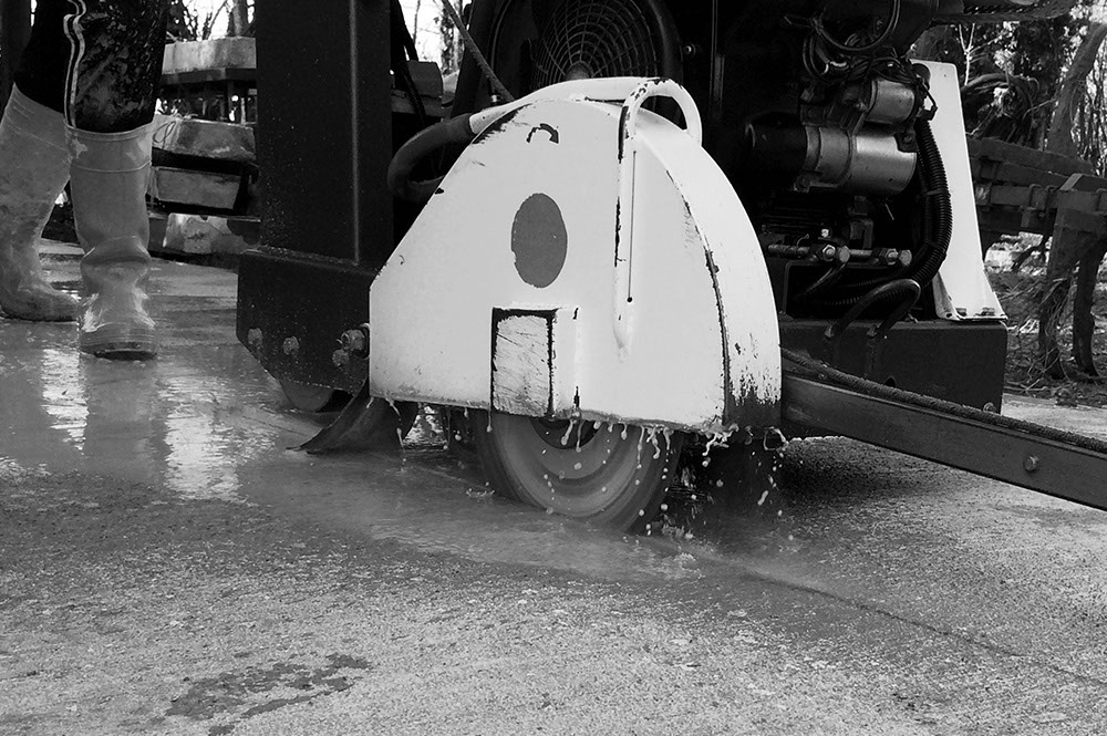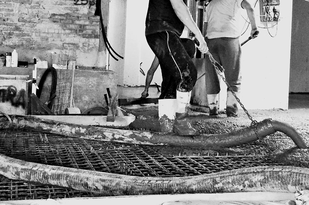 Stesura manuale del cemento, livellato seguendo pendenze prestabilite.